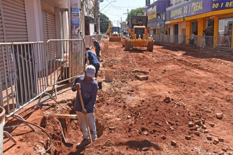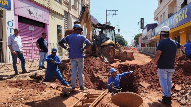 Abertura do Calçadão da Avenida 17 avança com substituição da tubulação de água e esgoto