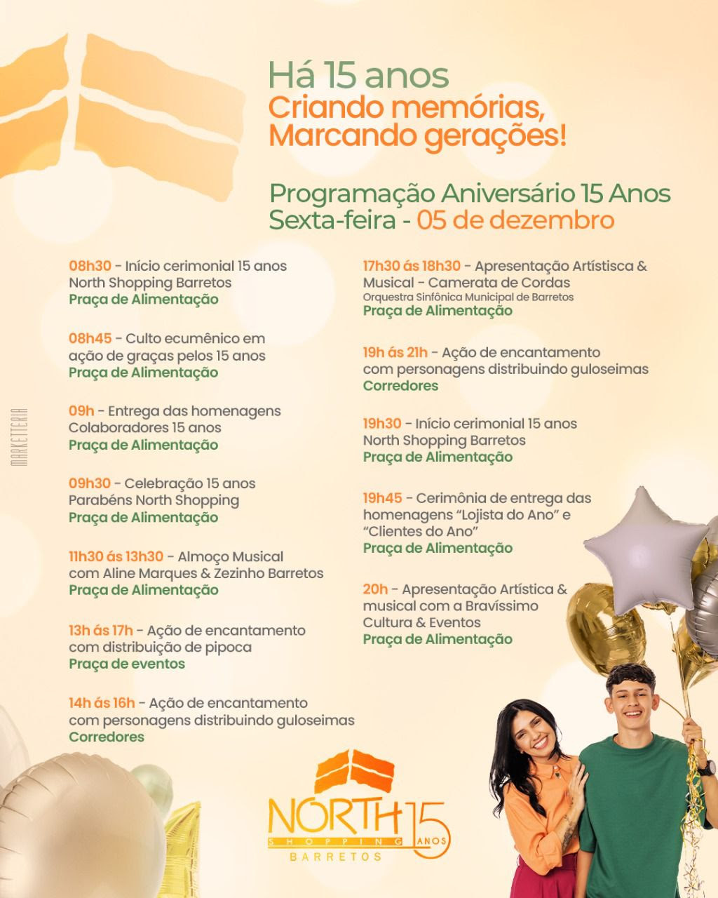 O que: Aniversário de 15 anos do North Shopping Barretos