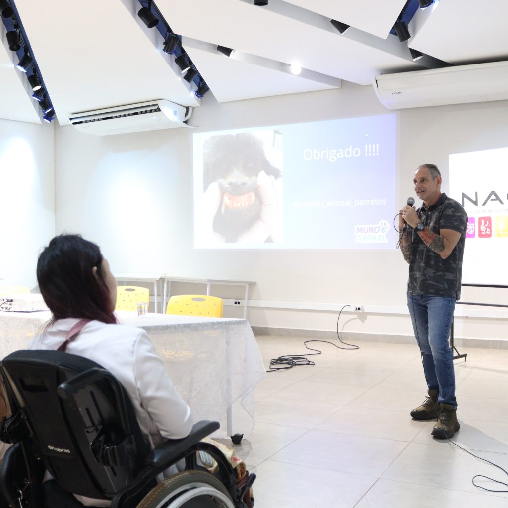 Durante a palestra, Renato Boiani destacou a importância da atuação responsável no manejo e na reabilitação de animais silvestres, especialmente aqueles envolvidos em acidentes urbanos e rodoviários. O profissional compartilhou experiências com quelônios (jabutis), aves (como tucanos) e primatas (como bugios), reforçando que, após o processo de recuperação, esses animais devem ser devolvidos ao seu habitat natural.