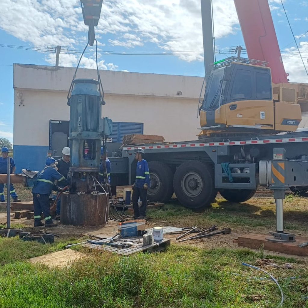 A intervenção técnica, realizada pela empresa Tecnoágua, incluiu a desmontagem das barras do eixo, avaliação minuciosa das peças e substituição das arandelas desgastadas, componentes essenciais para o alinhamento e sustentação do eixo que movimenta o bombeador instalado a mais de 330 metros de profundidade.