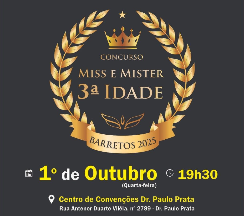 A Prefeitura da Estância Turística de Barretos, por meio da Secretaria Municipal de Assistência Social e Desenvolvimento Humano, promove nesta quarta-feira, 1º de outubro, às 19h30, no Centro de Convenções Dr. Paulo Prata, o Concurso Miss e Mister 3ª Idade, em comemoração ao Dia Internacional da Pessoa Idosa.