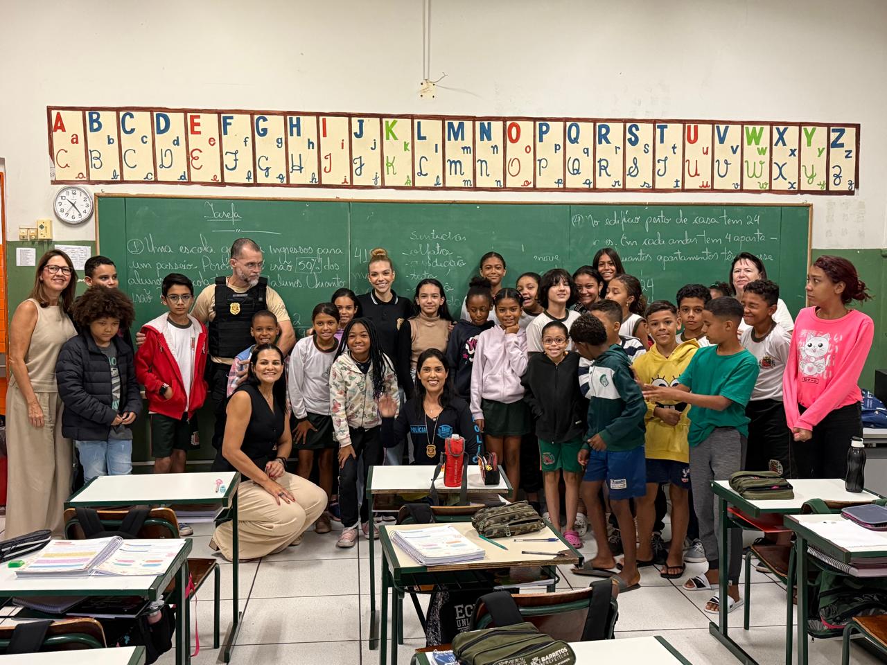 Nesta quarta-feira (4), a ação educativa aconteceu na Escola Municipal Leodete Silvério Jói, no bairro Pimenta. O projeto é desenvolvido por meio de visitas e palestras, utilizando a presença dos policiais para aproximar a instituição da comunidade escolar e desmistificar o trabalho investigativo, focando sempre na prevenção e na formação cidadã dos jovens.