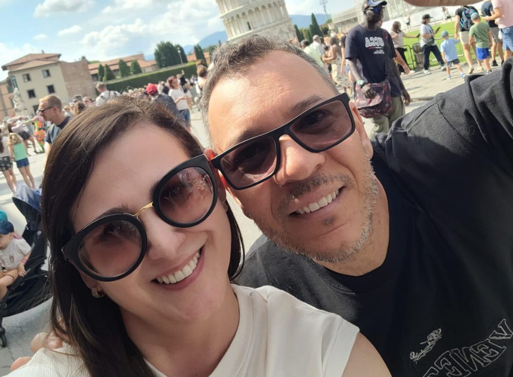 O casal Nixon Ramos e Renata Pacola está em clima de dolce vita durante uma encantadora viagem pela Itália. O registro da vez, e que chamou atenção nas redes, foi feito aos pés da icônica Torre de Pisa, na região da Toscana.