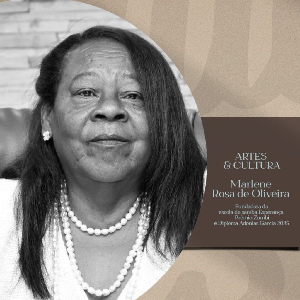 - Artes & Cultura — Marlene Rosa de Oliveira — fundadora da escola de samba Esperança; Prêmio Zumbi e Diploma Adonias Garcia 2025