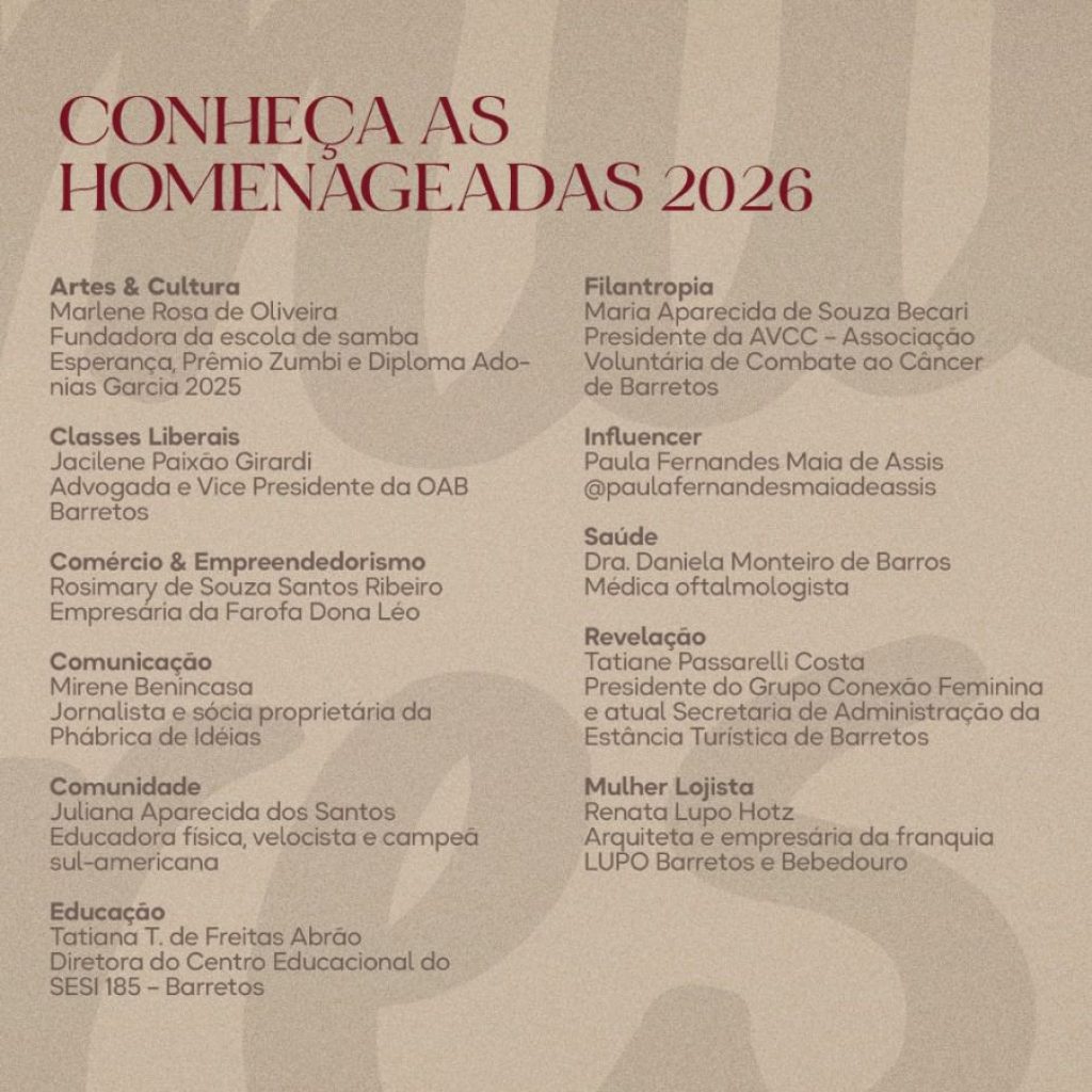 O North Shopping Barretos anuncia as 11 homenageadas do Troféu Mulher 2026, premiação tradicional que o empreendimento realiza desde sua abertura, em reconhecimento a histórias femininas que impactam a cidade e a região. A cerimônia de entrega acontece no dia 5 de março, às 20h, no North Shopping Barretos.