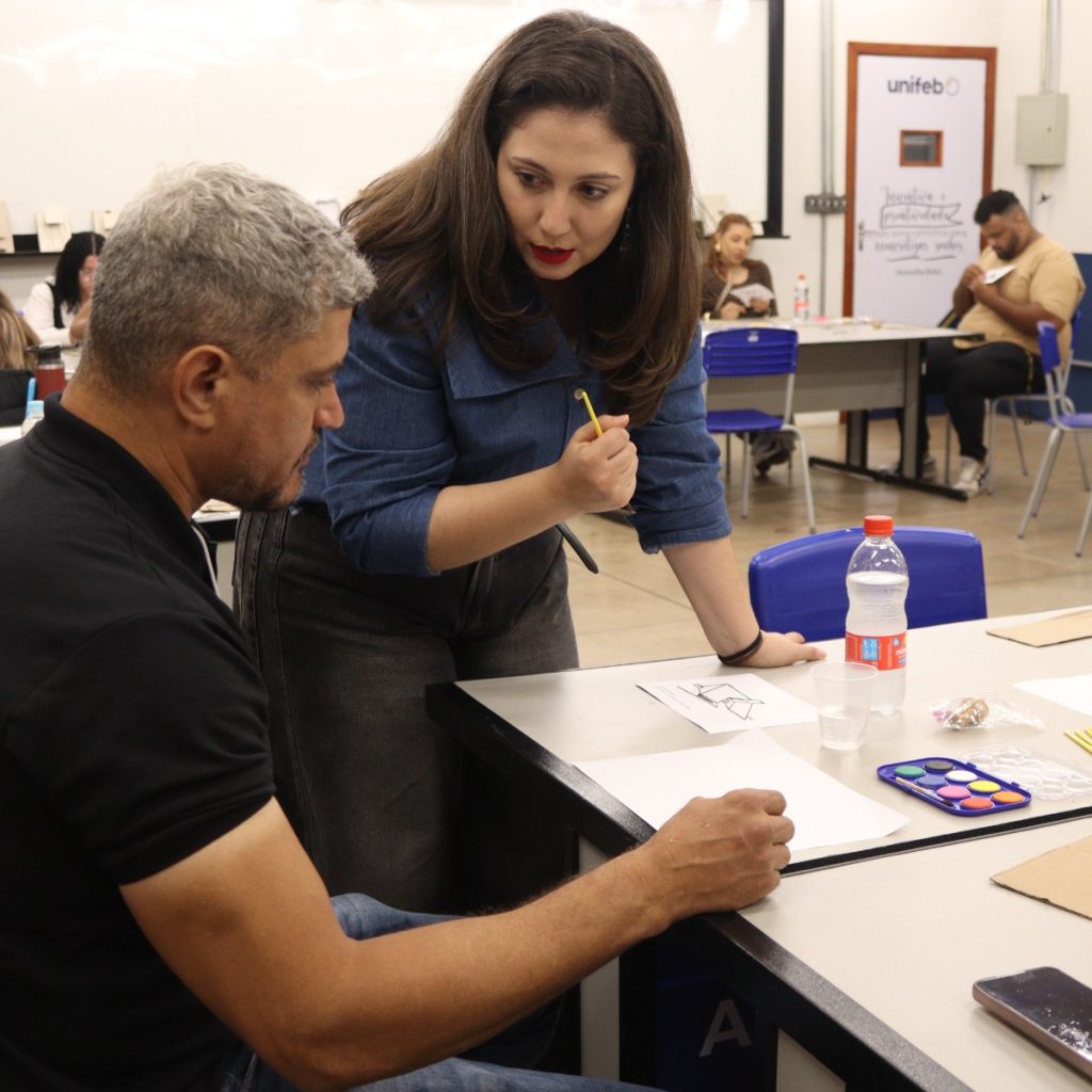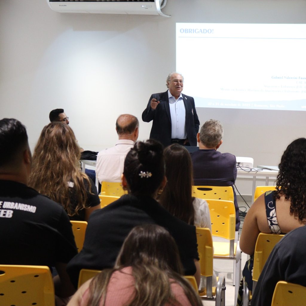No segundo dia, a Arquiteta Roberta Avelar conduziu a palestra e atividade prática “Por dentro de um escritório de arquitetura”, proporcionando aos alunos uma imersão na rotina e na estrutura de um ateliê profissional, destacando como os espaços de criação refletem a identidade dos arquitetos e artistas.