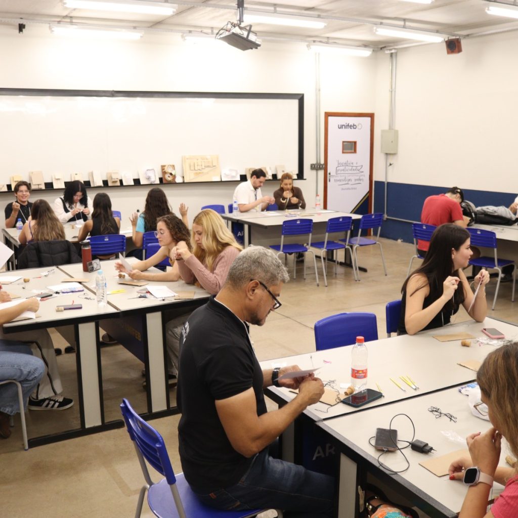 A terceira noite foi marcada pela oficina “Agulha e Pincel”, ministrada pela artista Vera Suzuki, que uniu costura e aquarela em uma vivência sensorial sobre expressão e representação de projetos arquitetônicos. A proposta levou os alunos a experimentarem novas linguagens e técnicas, reforçando a importância da identidade visual na apresentação de projetos.